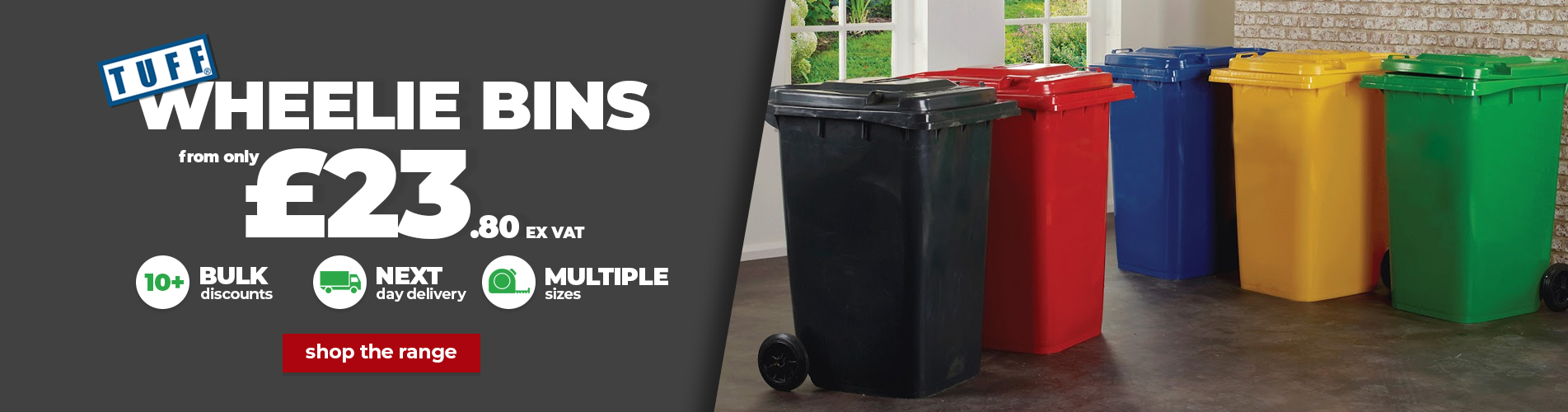We aim to bring you quality products at competitive prices. We are one of the UK's largest wheelie bin company stockists. They all brand new and stored inside our 40,000 square feet warehouse. Based in the West Midlands, we aim to deliver our products as fast as possible to the rest of the UK!